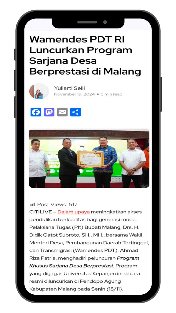 Merupakan Program yang diresmikan oleh Kementerian Desa, Pembangunan Daerah Tertinggal, dan Transmigrasi (Kemendes-PDTT) RI menjadi salah satu wujud nyata kolaborasi pemerintah pusat, pemerintah daerah, dan perguruan tinggi dalam memperluas akses pendidikan hingga ke pelosok desa.